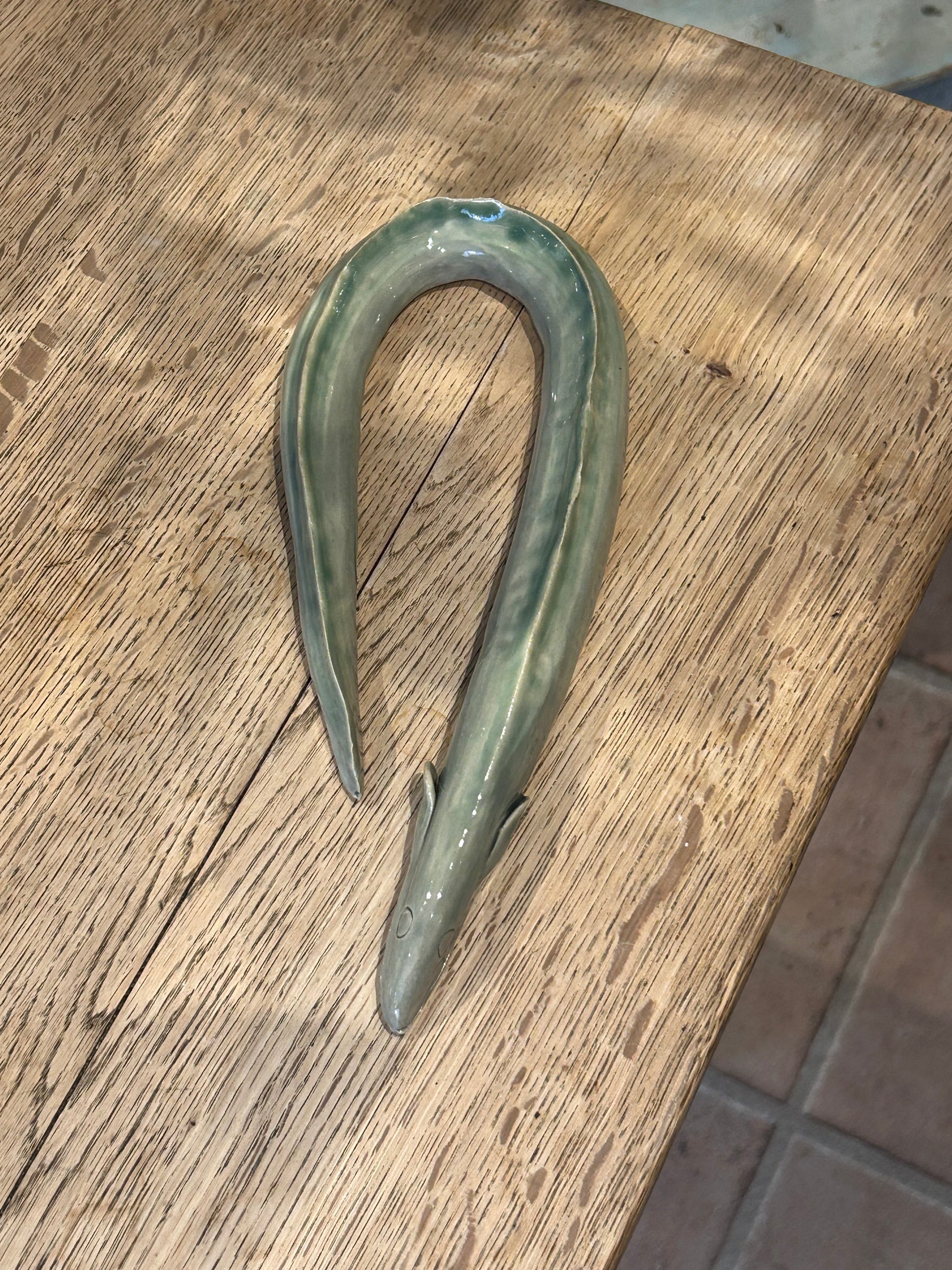 Sød og finurlig ål. Kan både ligge ned eller hænge på væggen. Den måler 26 cm i længden og 10,5 cm i bredden. Lavet i stentøj og kan derfor også tåle at være ude året rundt.