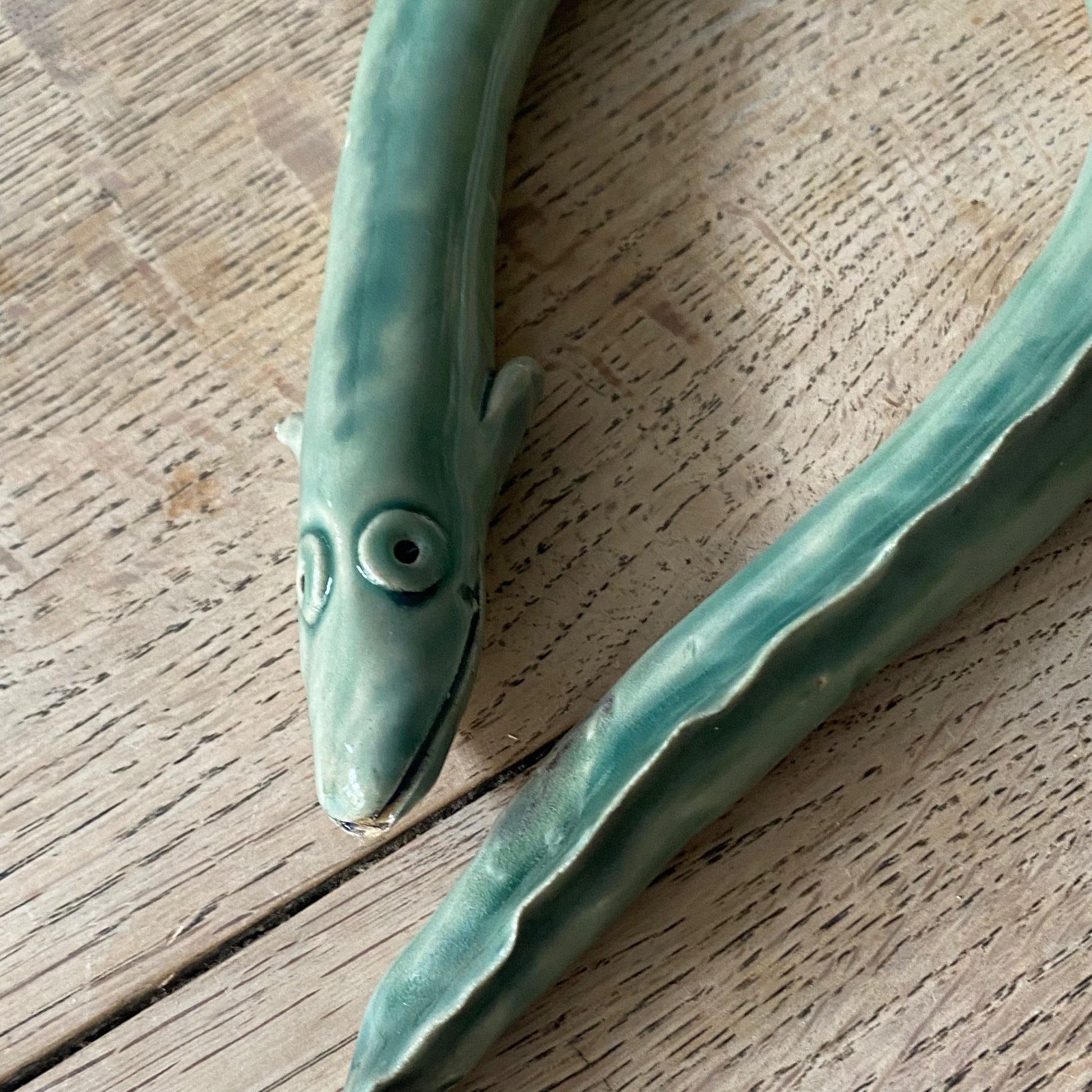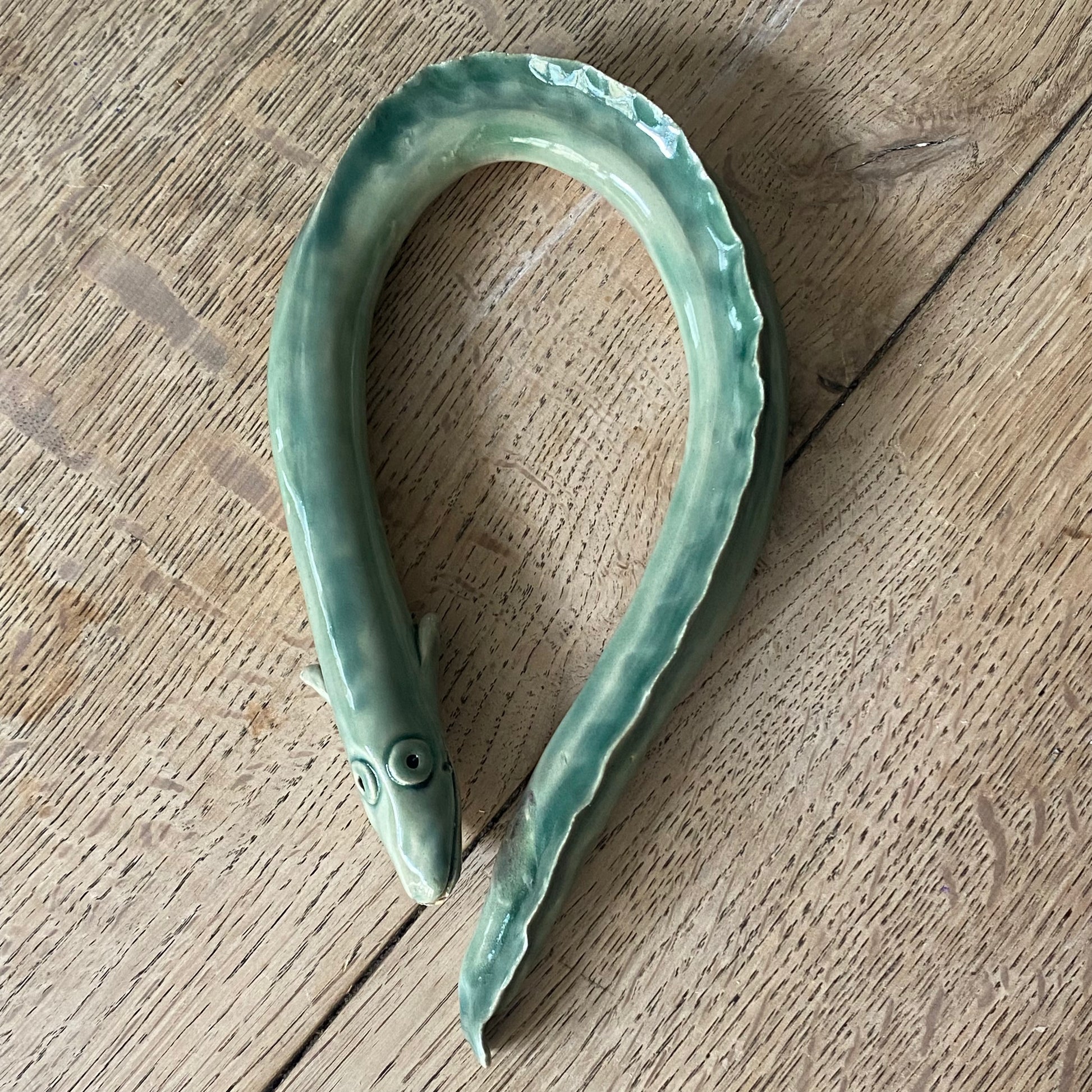Sød og finurlig ål. Kan både ligge ned eller hænge på væggen. Den måler 20 cm i længden og 10,5 cm i bredden. Lavet i stentøj og kan derfor også tåle at være ude året rundt.