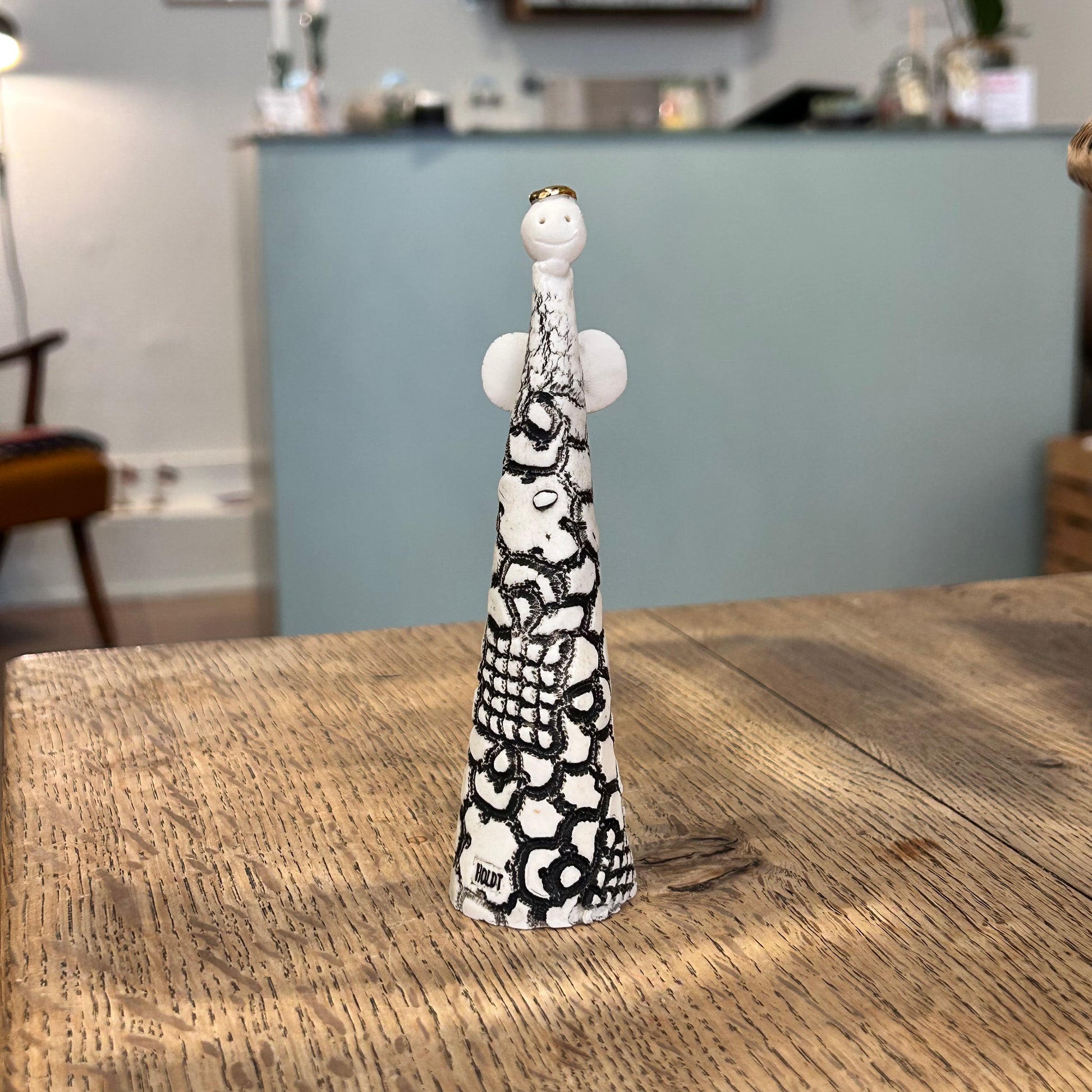 Skøn lille håndlavet engel i porcelæn med guld glorie. Ca. 16 cm høj.