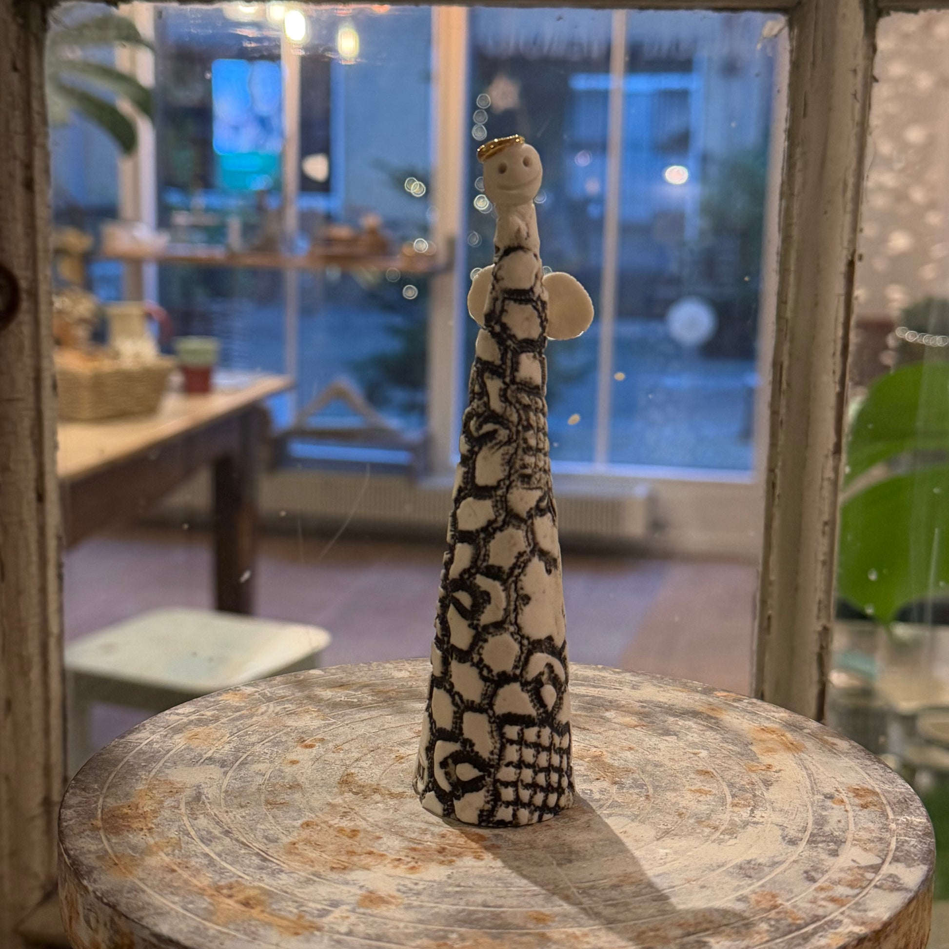 Skøn lille håndlavet engel i porcelæn med guld glorie. 13,5 cm høj.