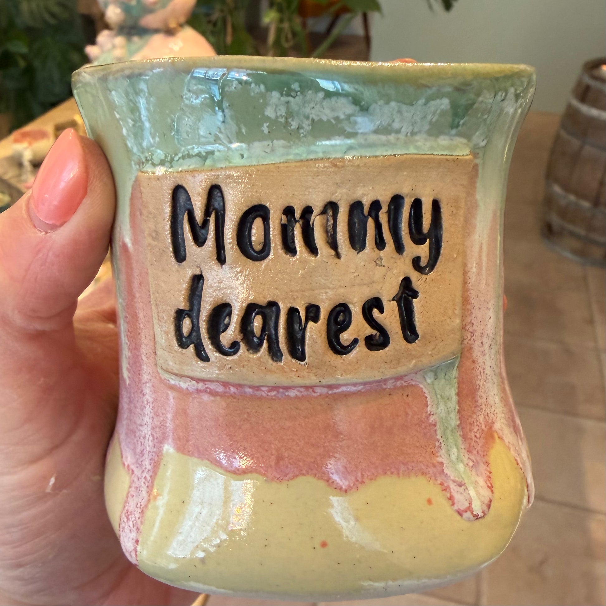 Unikt håndlavet krus/kop i stentøj med tekst. Kruset tåler opvaskemaskine og er 9 cm højt.