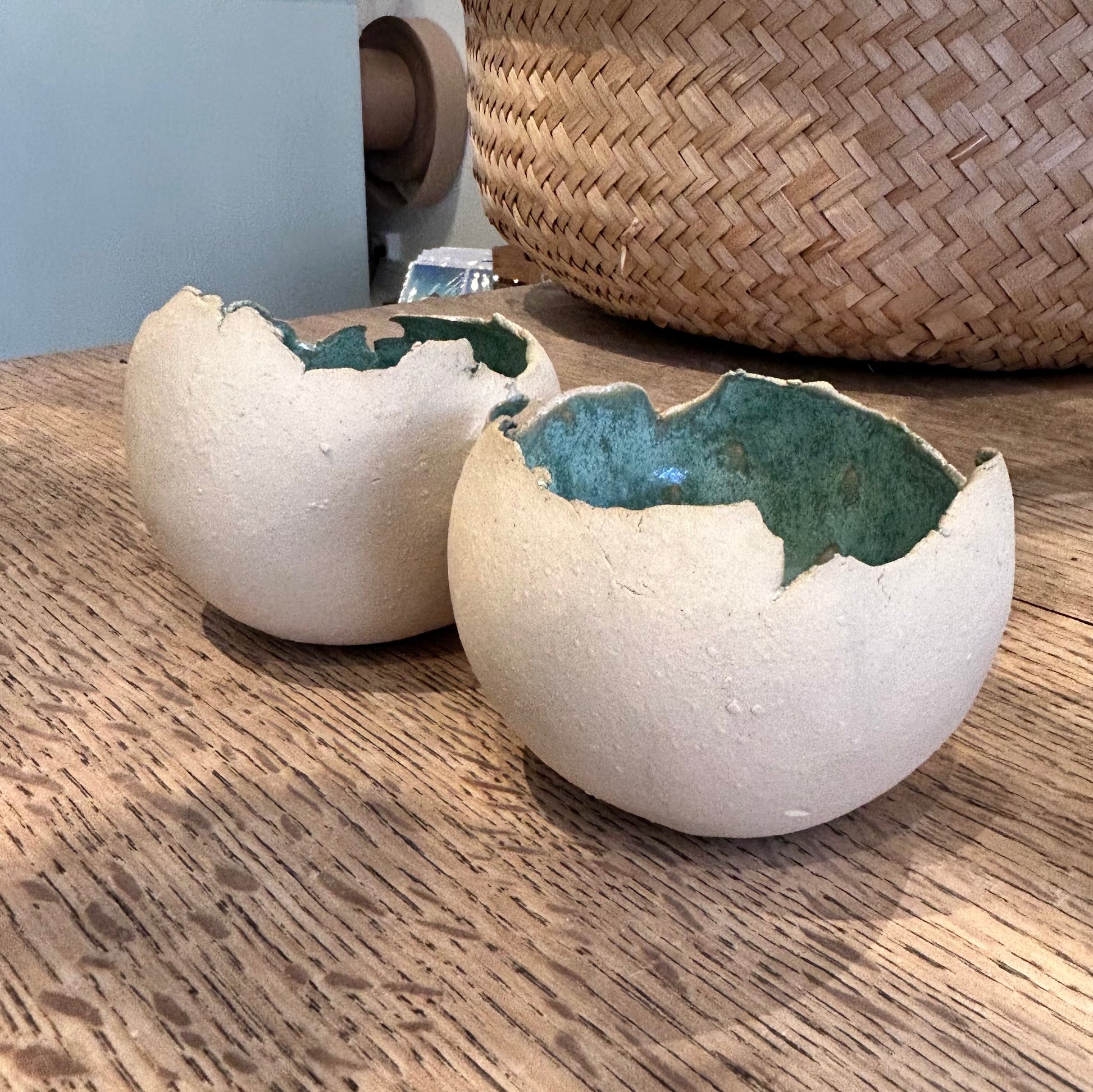 Ø 8 cm. Med grøn krystalglasur indvendigt. Pris pr. stk.